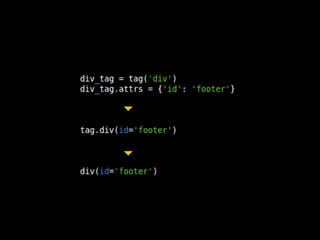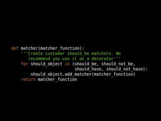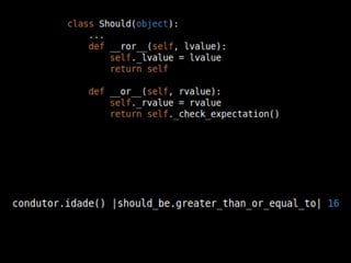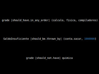 O documento discute o desenvolvimento de linguagens específicas de domínio (DSLs) em Python, abordando conceitos como fluência, expressividade e concisão. Apresenta exemplos práticos e recursos como bibliotecas e frameworks, além de discutir sobrecarga de operadores e matchers customizados. O conteúdo também inclui referências a projetos e repositórios no GitHub relacionados ao tema.