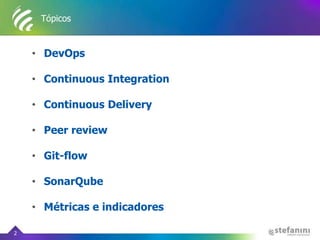 O documento aborda o desenvolvimento ágil e de qualidade de software, destacando práticas de DevOps, integração contínua e entrega contínua. Também menciona a importância da revisão em pares e o uso de ferramentas como Git-Flow e SonarQube para garantir a qualidade do código. Desafios e considerações na implementação dessas práticas são discutidos, enfatizando a necessidade de adaptações conforme as necessidades de cada projeto.
