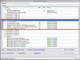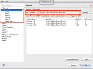 O documento apresenta um tutorial sobre desenvolvimento de aplicativos para Android. Discute o mercado de smartphones e tablets, as principais plataformas de desenvolvimento móvel e como começar a desenvolver aplicativos nativos para Android usando Java, Eclipse e o Android SDK.