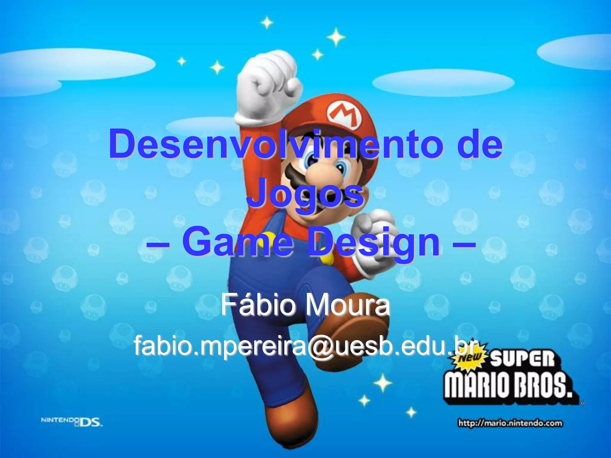O documento discute o processo de game design, definindo-o como a descrição do jogo baseada em suas características finais. Explora as várias fases do game design, incluindo a inicial, tratamento, crítica e especificação detalhada. Também fornece exemplos do game design do jogo Pitfall.