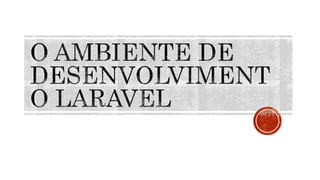 O documento discute frameworks, definindo-os como conjuntos de classes que encapsulam abstrações para solução de problemas relacionados. Apresenta o framework Laravel, desenvolvido em PHP para aplicações web baseadas em MVC, e o Homestead, ambiente de desenvolvimento oficial do Laravel utilizando Vagrant. Explica também rotas no Laravel, mapeando URLs a controllers via arquivo routes.php.