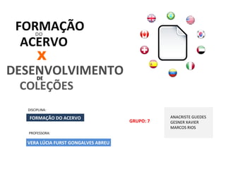 O documento discute o desenvolvimento de coleções em bibliotecas, destacando a importância de políticas de seleção que considerem as necessidades da comunidade e o estágio da coleção. Aborda aspectos como a avaliação, aquisição e desbastamento de materiais, enfatizando que o processo é contínuo e deve ser adaptado às mudanças contextuais. O texto também ressalta a importância do bibliotecário como mediador entre o acervo e o usuário.