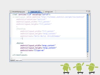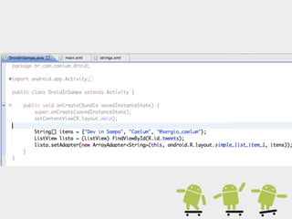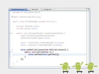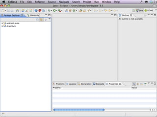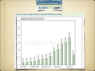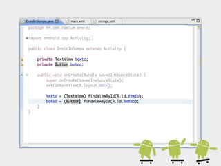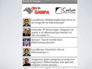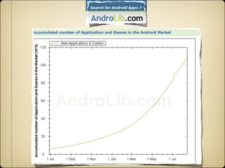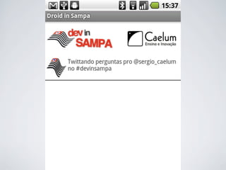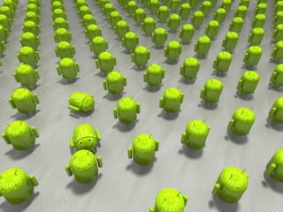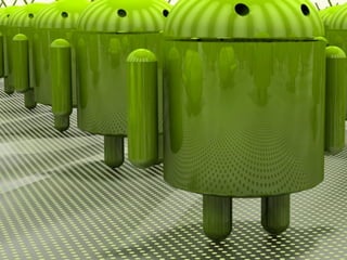 O documento descreve as principais características e capacidades da plataforma Android, incluindo seu kernel Linux, máquina virtual Dalvik, suporte a Java, arquivos e recursos, widgets, multitarefa, OpenGL, sensores, SQLite, Webkit, HTML5, Flash e suporte a dispositivos móveis como smartphones e tablets.