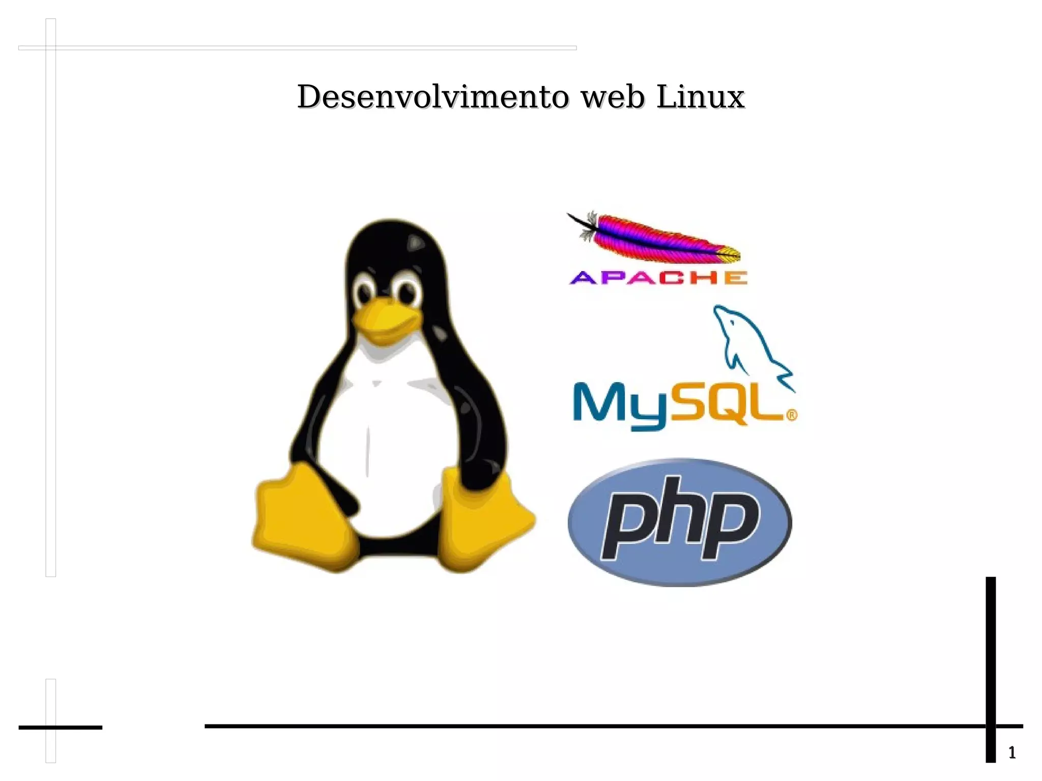 O documento discute conceitos relacionados ao desenvolvimento web em Linux, incluindo GNU/Linux, distribuições como Ubuntu, servidores web Apache, bancos de dados MySQL, linguagem de programação PHP e projetos de exemplo utilizando essas tecnologias.