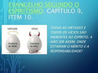 O documento discute os conceitos de uso e abuso e como o abuso pode levar a desequilíbrios espirituais e morais. Abuso é definido como exceder os limites do necessário e pode resultar em doença, vício, egoísmo e outros aspectos negativos. O documento também menciona que alguns desequilíbrios podem ser resultado de questões cármicas ou mediunidade e que a cura requer autorreflexão e perdão em vez de rituais externos.