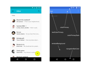 O documento oferece orientações sobre como tornar aplicativos Android mais atraentes e funcionais para os usuários. Ele destaca a importância da usabilidade, escolha de cores e fontes, e o uso de grids adequados. Além disso, enfatiza a necessidade de evitar atrasos para os usuários e a importância de animações e transições fluídas.