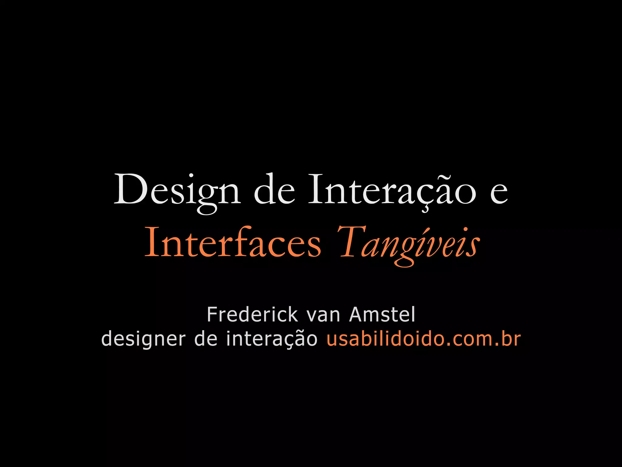 O documento discute o futuro da computação pervasiva e interfaces tangíveis. Apresenta exemplos de projetos que cruzam dados através de sistemas integrados e interfaces tangíveis para lidar com a crescente computação em todas as atividades da vida. Também fornece exemplos de projetos atuais de sucesso que ilustram essas ideias.