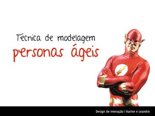 1) O documento discute a técnica de modelagem de personas ágeis, apresentando exemplos simplificados de personas tradicionais versus personas ágeis.