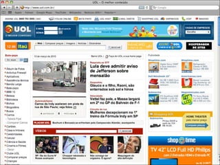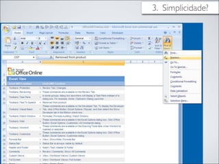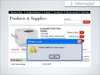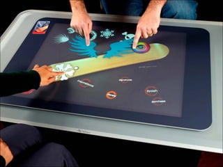 O documento discute o design de interfaces, definindo-o como o desenho da interação entre o usuário e um produto. Explora conceitos como usabilidade, estética, informação, simplicidade e consistência que definem um bom design de interface. Também discute as responsabilidades do designer de interfaces e exemplos de inovações em design de interface que tiveram sucesso.