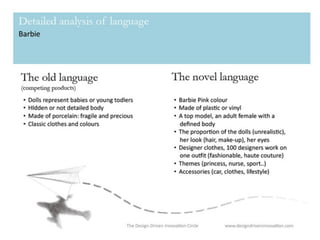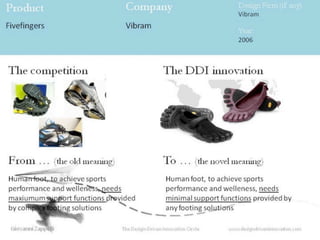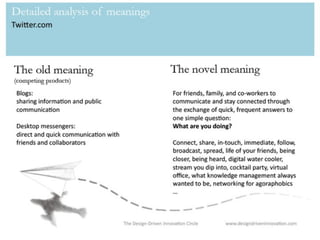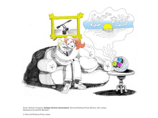O documento discute o conceito de design-driven innovation e sua importância na criação de produtos que são desejados pelos consumidores, ressaltando a diferença em relação ao user-centered design. Ele enfatiza que essa forma de inovação se baseia na mudança de significado e no entendimento do contexto sociocultural dos consumidores. Além disso, menciona a relevância de uma abordagem colaborativa com intérpretes para compreender como as pessoas atribuem significados aos produtos.