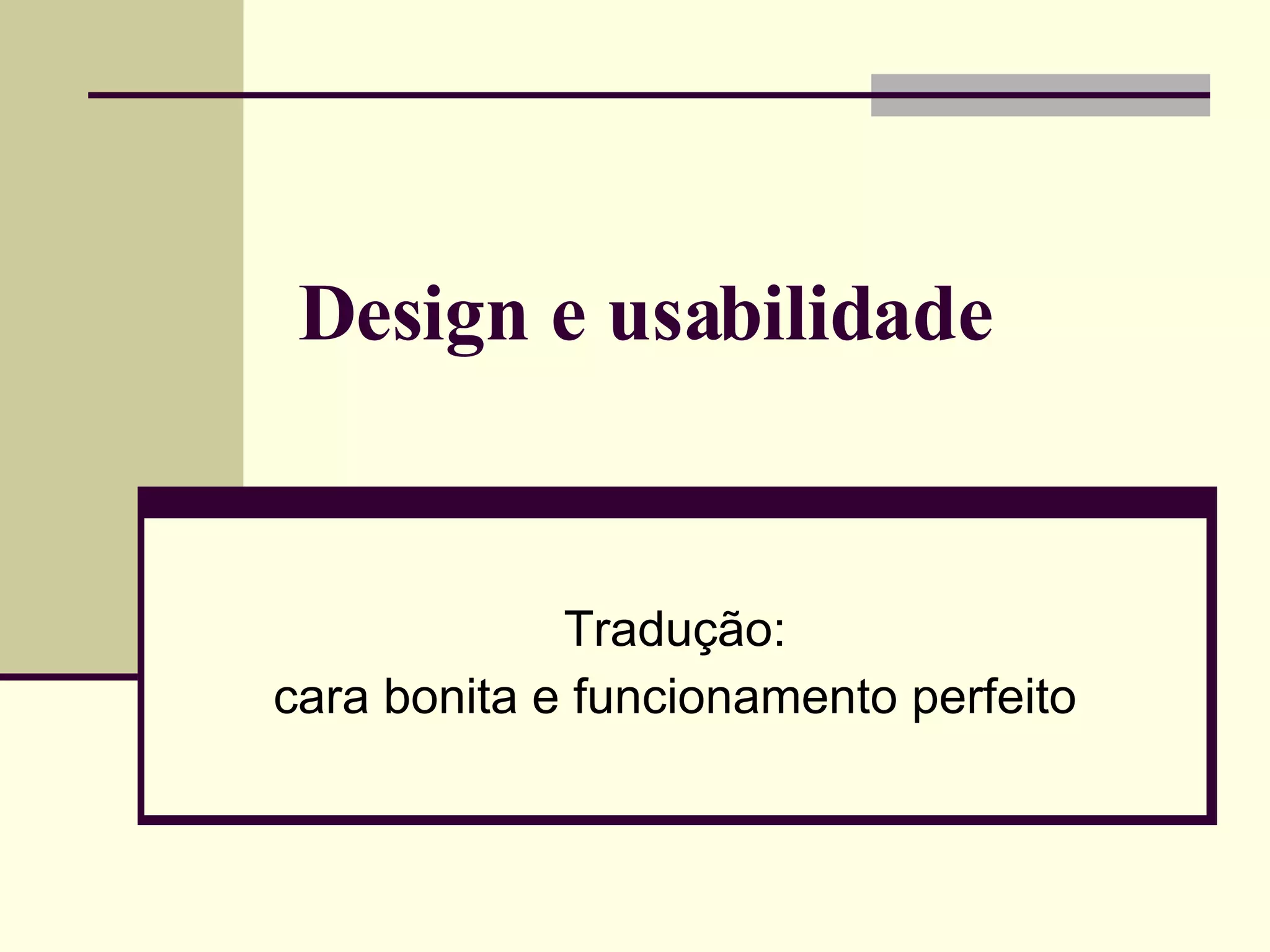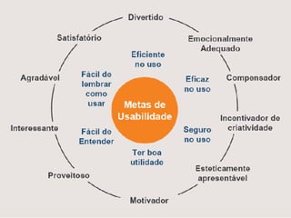 1) O documento discute design e usabilidade, categorizando diferentes tipos de usuários e erros comuns em projetos de interface.