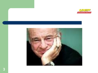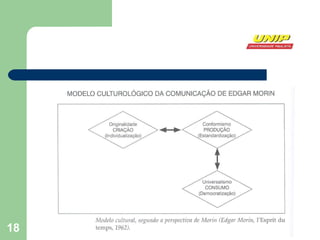 Edgar Morin é um sociólogo francês que desenvolveu a Teoria da Complexidade. Ele critica as ciências clássicas por se basearem em quatro pilares: 1) ordem, 2) separabilidade, 3) redução e 4) lógica indutivo-dedutiva. Morin defende uma abordagem interdisciplinar e sistêmica que reconhece a complexidade dos fenômenos e a inter-relação entre as partes e o todo. Sua teoria influenciou estudos sobre cultura de massa e defende que ela é resultado de um processo dialético entre