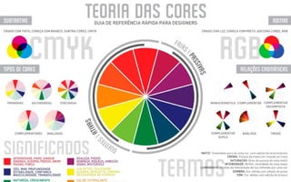 O documento discute o que é e o que não é design, destacando que design não é apenas arte ou estética, mas uma disciplina que envolve projeto, função e resolução de problemas. Ele aborda a fisiologia da percepção das cores e desmistifica a visão de que o design é baseado em opiniões subjetivas. O autor enfatiza a importância de conhecimento técnico e método no processo de design.
