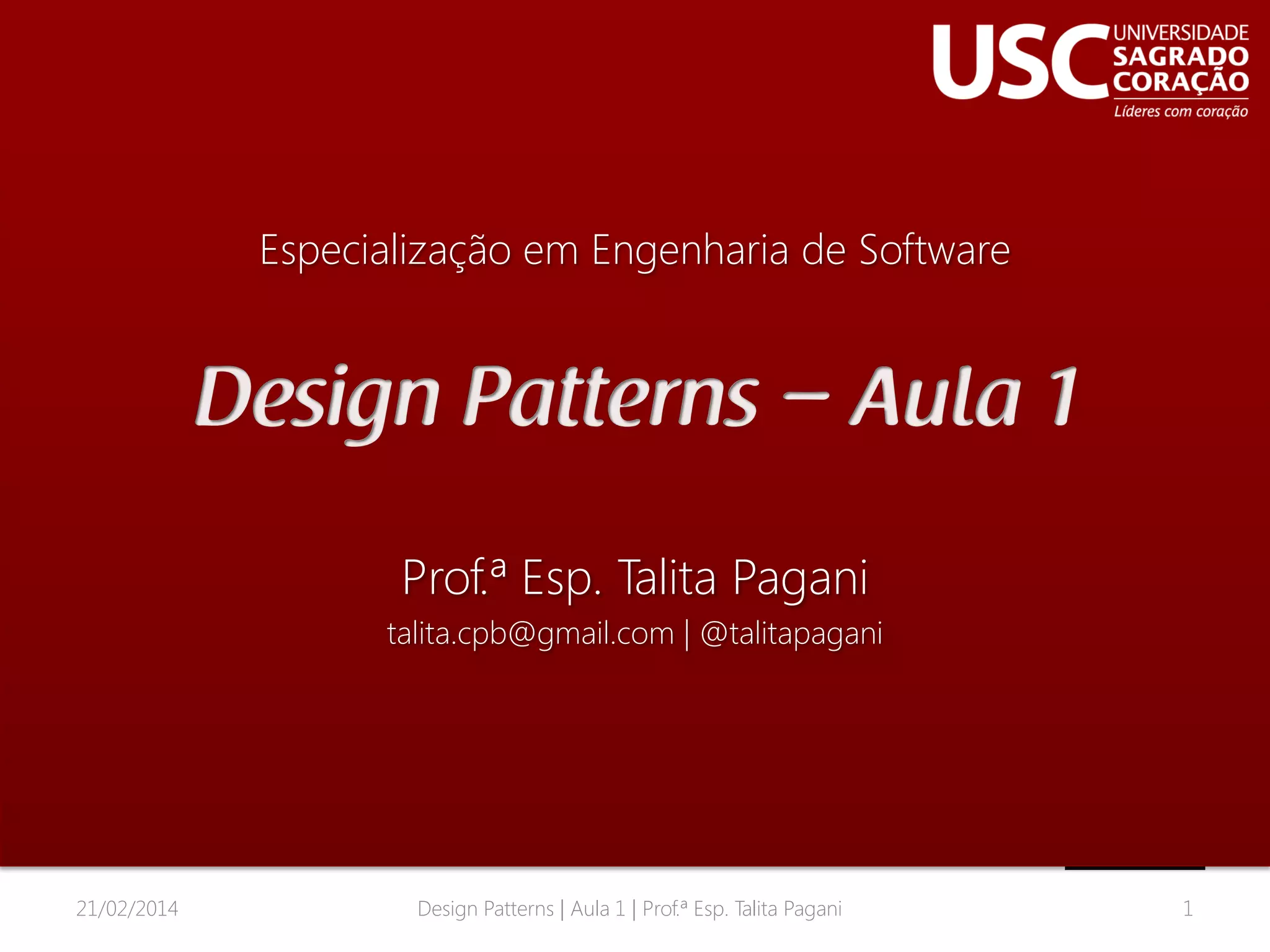 Design Patterns | Aula 1 | Prof.ª Esp. Talita Pagani