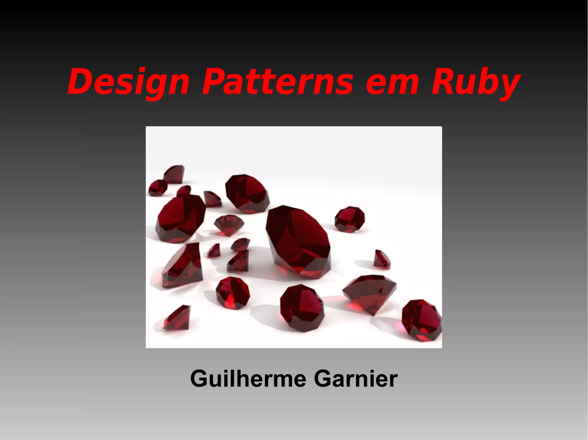 O documento discute padrões de design em Ruby, enfatizando a arquitetura MVC (Model-View-Controller) e a importância do princípio de responsabilidade única. Apresenta exemplos práticos de implementação de decorators e presenters para otimizar a organização de código e facilitar a reutilização, promovendo melhores práticas na estruturação de aplicações Rails. O autor também aconselha a análise cuidadosa na aplicação de padrões de design, evitando seu uso excessivo.