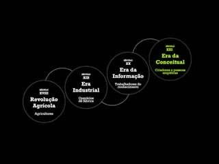 O documento discute como o pensamento analítico tradicionalmente ensinado nas escolas de negócios é inadequado para resolver problemas complexos da atualidade e promover a inovação. Defende que o pensamento abdutivo do design thinking é mais apropriado, focando na criação e validação de hipóteses para gerar soluções que atendam objetivos, ao invés de se basear apenas no conhecimento e lógicas do passado. Também ressalta a importância do pensamento integrativo e da Era Conceitual para as organizações.