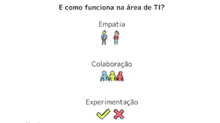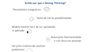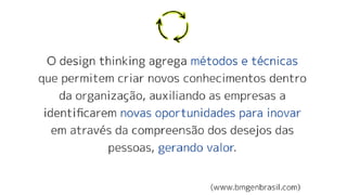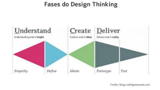 O documento explora ferramentas e processos do design thinking, enfatizando a centralidade do ser humano nas soluções. Apresenta um case da Totvs que utilizou design thinking para melhorar seu software de ponto de venda, resultando em reduções de tempo e melhorias na experiência do usuário. Também menciona a importância da experimentação para gerar soluções inovadoras e competitivas.