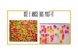 O documento discute o Design Thinking como uma metodologia centrada no usuário para solução de problemas que valoriza a empatia, colaboração e experimentação. Apresenta os benefícios de seu uso, como ser flexível, ágil e prático, e discute como implantá-la de forma simples, focando nos pilares da empatia, colaboração e prototipação.