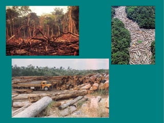1) As florestas tropicais estão sendo destruídas rapidamente a uma taxa de 12-20 hectares por minuto devido ao desmatamento para agricultura, pecuária e desenvolvimento;