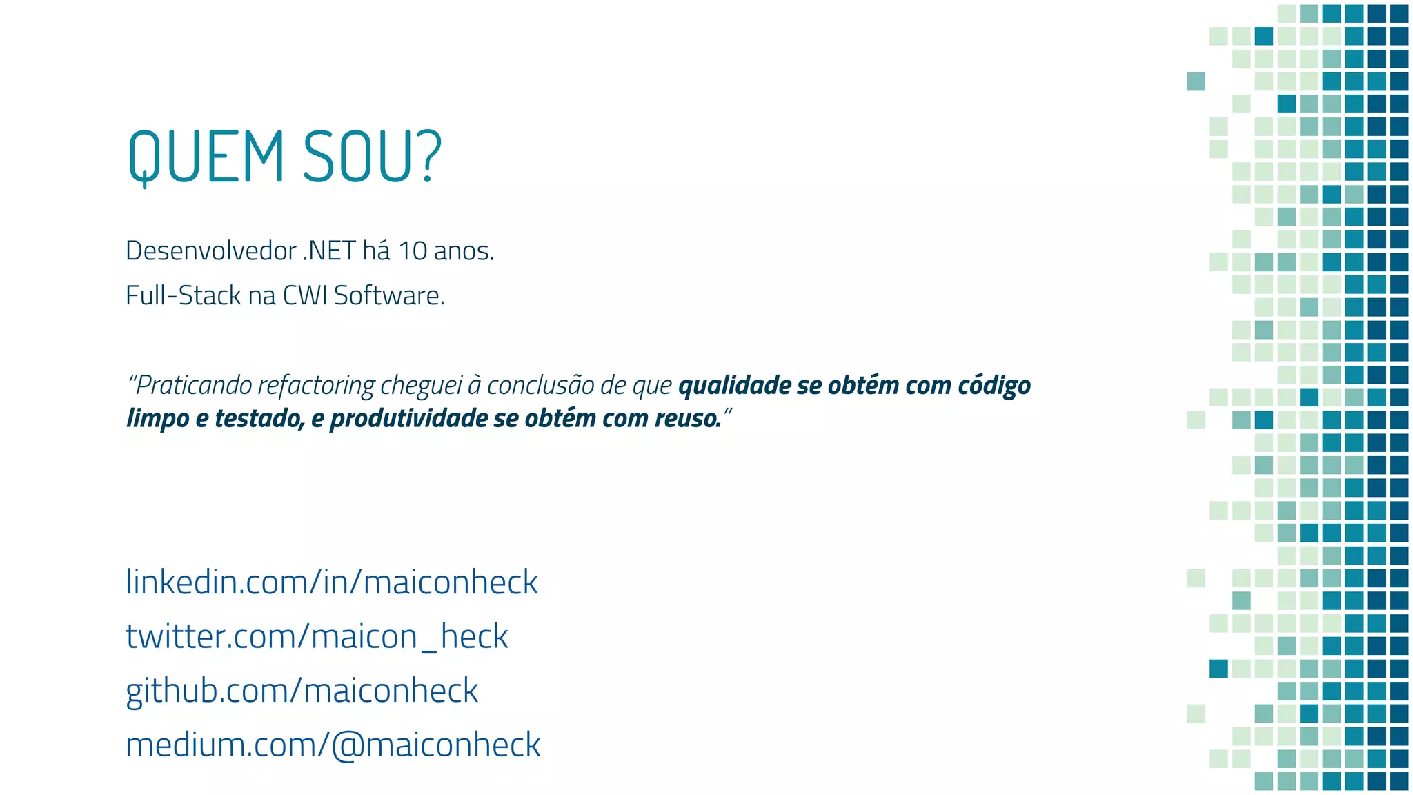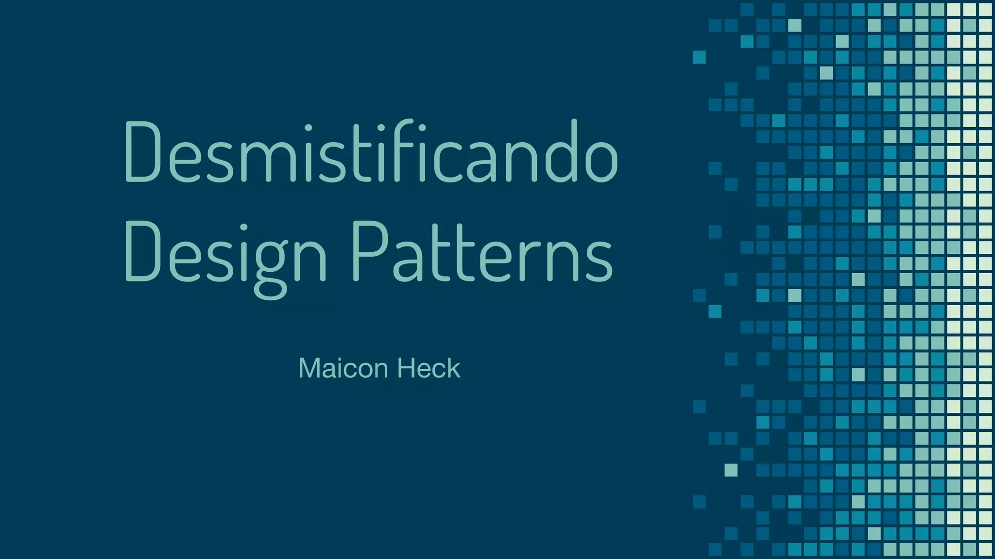 O documento apresenta Maicon Heck, um desenvolvedor .NET com 10 anos de experiência. Ele irá falar sobre Design Patterns, explicando os problemas da síndrome do "isso eu já sei" em programação orientada a objetos, as categorias e padrões mais comuns de Design Patterns como Strategy, Factory Method e Abstract Factory, e mostrar exemplos reais de implementação desses padrões.