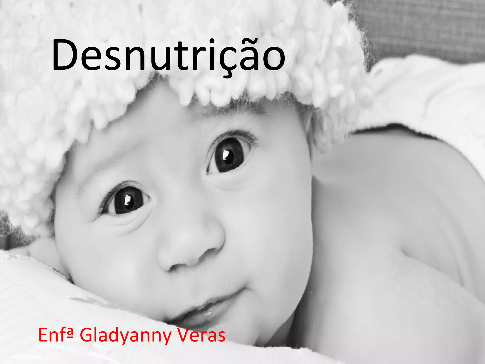 O documento discute desnutrição, definindo-a como um déficit protéico e/ou calórico causado por dieta inapropriada ou má absorção de nutrientes. Apresenta os tipos clínicos de desnutrição grave (marasmo, kwashiorkor e forma mista), seus sintomas e tratamento, que envolve dieta balanceada, hidratação e cuidados com a pele e alimentação. Também discute fatores associados à desnutrição e a importância da curva de crescimento para sua classificação.