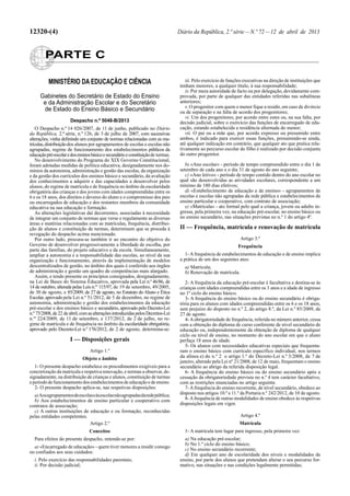 Este documento estabelece normas sobre matrículas, distribuição de alunos, constituição de turmas e funcionamento de estabelecimentos de educação e ensino em Portugal. Define conceitos como encarregado de educação, ano escolar e ano letivo. Rege procedimentos para matrícula e renovação de matrícula, incluindo apresentação de pedidos de matrícula e indicação de preferências de estabelecimento.