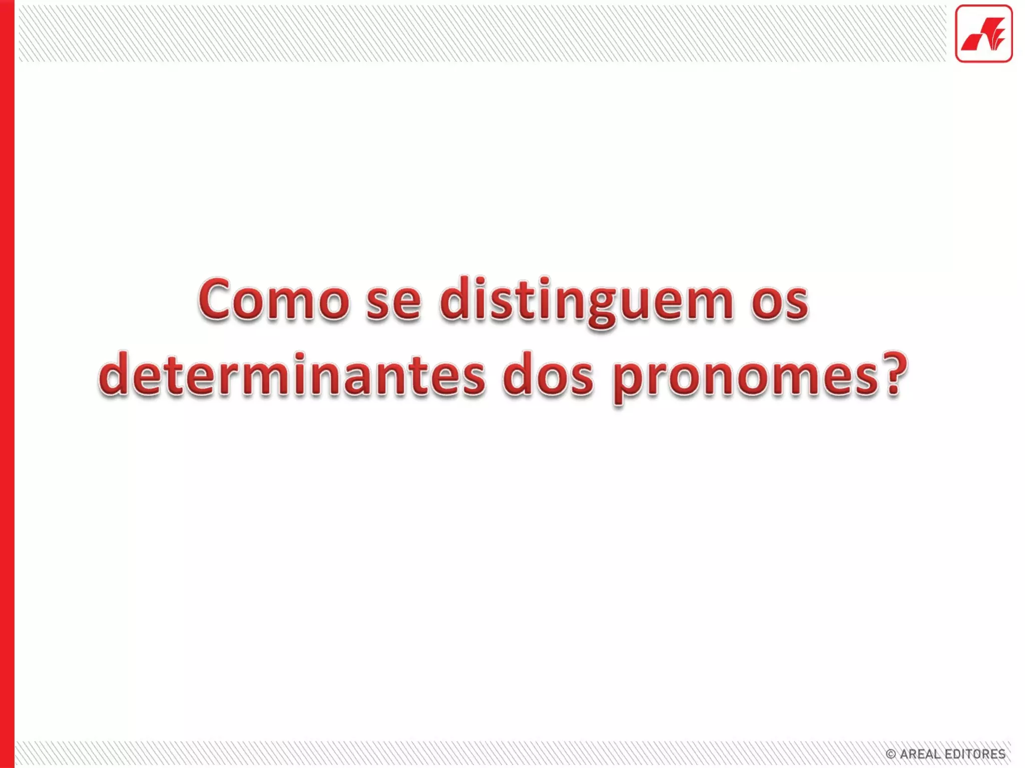 O documento explica a diferença entre determinantes possessivos e pronomes possessivos em frases. Determinantes possessivos vêm antes de nomes, enquanto pronomes possessivos referem-se a nomes antecedentes. Exemplos ilustram quando "seu", "minha", e "teu" são determinantes versus quando são pronomes.