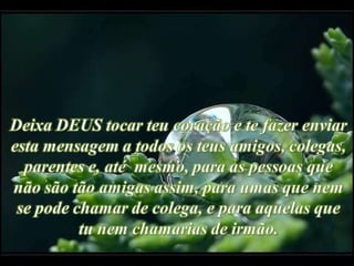 O documento afirma que Deus existe e conhece os segredos do coração humano, que Ele consola com um abraço e dá esperança, e que tudo é melhor quando Deus está na frente de tudo.
