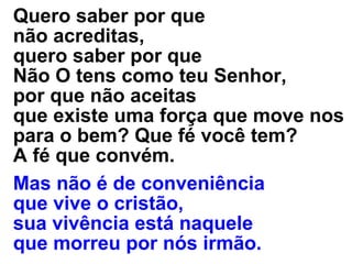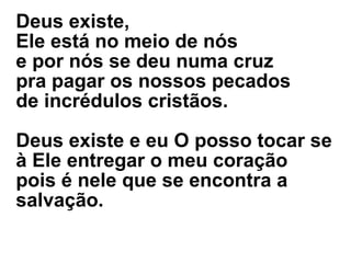 O autor pergunta por que o leitor não acredita em Deus como seu Senhor e não aceita Sua existência e força para o bem. Ele diz que a fé cristã não é por conveniência, mas sim por amor àquele que morreu na cruz para pagar os pecados dos incrédulos. Deus existe e pode ser sentido se o coração for entregue a Ele, onde se encontra a salvação.