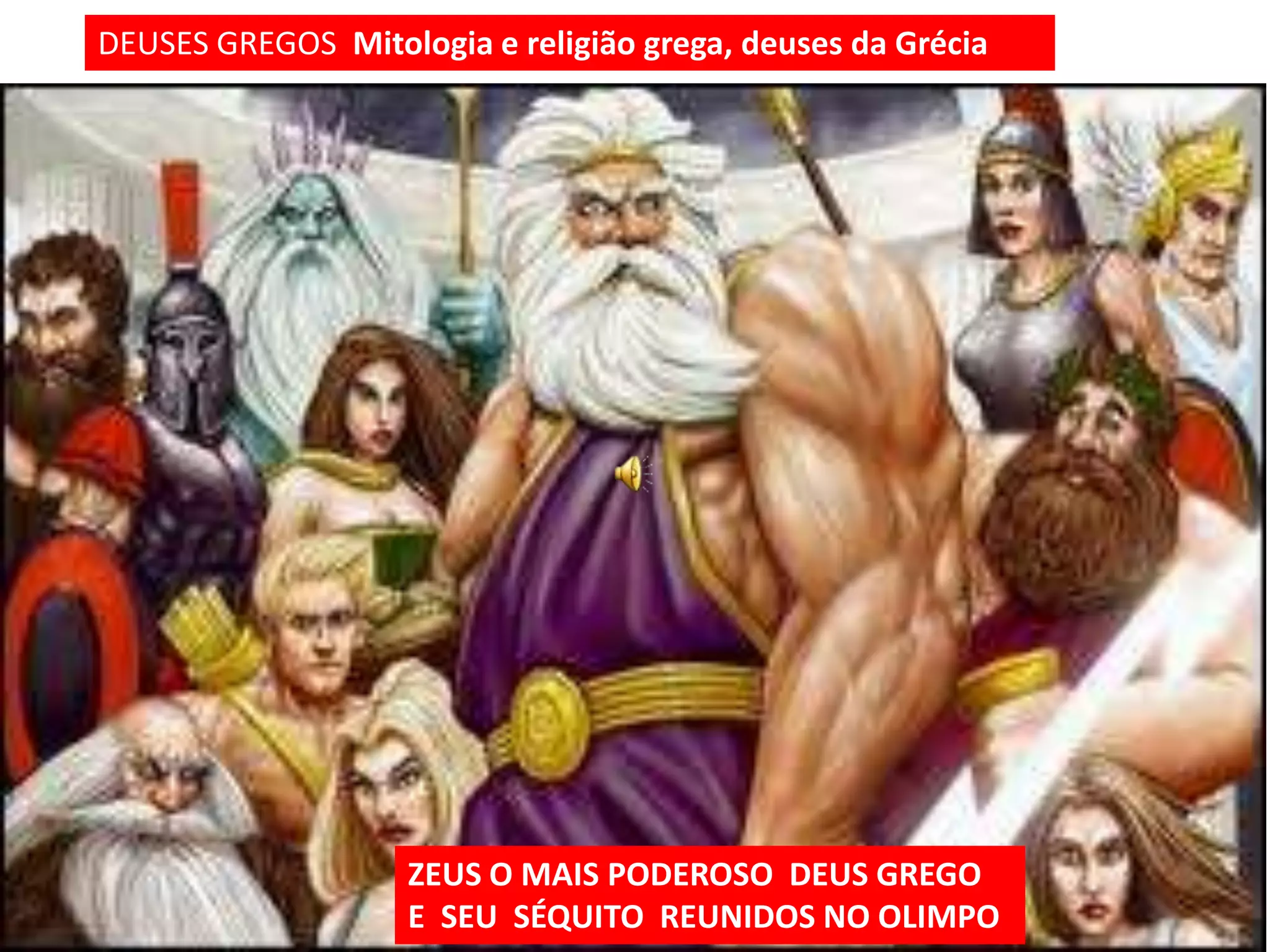 Na Grécia Antiga, os gregos acreditavam em vários deuses que habitavam o Monte Olimpo e influenciavam os humanos. Zeus era o deus supremo. Cada cidade tinha um deus protetor e cada deidade representava uma força da natureza ou sentimento humano, como Afrodite, deusa do amor e da beleza. A mitologia grega explicava fenômenos naturais e servia para passar ensinamentos.