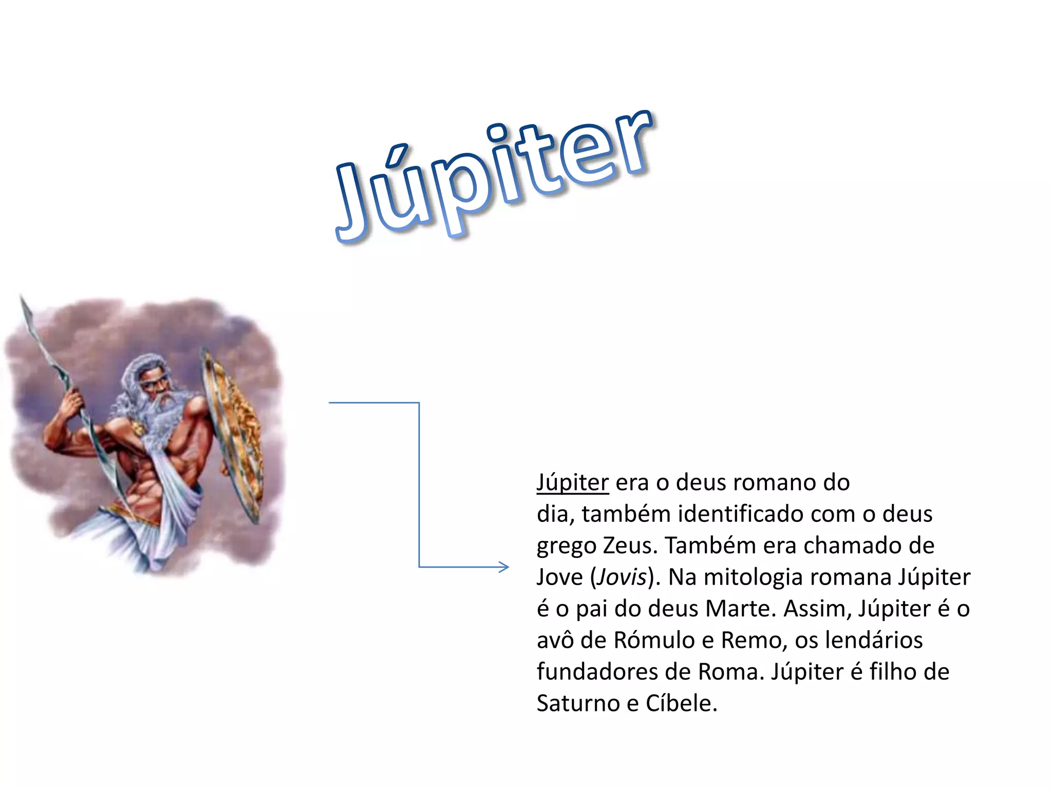 Júpiter era o deus romano do dia e pai de Marte, avô dos fundadores de Roma, Rômulo e Remo. Marte era o deus romano da guerra sangrenta, em oposição à guerra justa de Minerva. Vénus era a deusa romana do amor e da beleza, equivalente à deusa grega Afrodite.