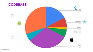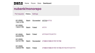 O documento aborda a melhoria da experiência do desenvolvedor no Nubank, destacando a importância da usabilidade, automação, comunicação e documentação de qualidade. Também discute desafios relacionados ao gerenciamento de dependências em um monorepo, além da implementação de práticas de CI/CD e ferramentas essenciais como Dart e Flutter. A apresentação enfatiza a necessidade de estabilidade do produto e a colaboração entre equipes para promover inovações e melhorias contínuas.