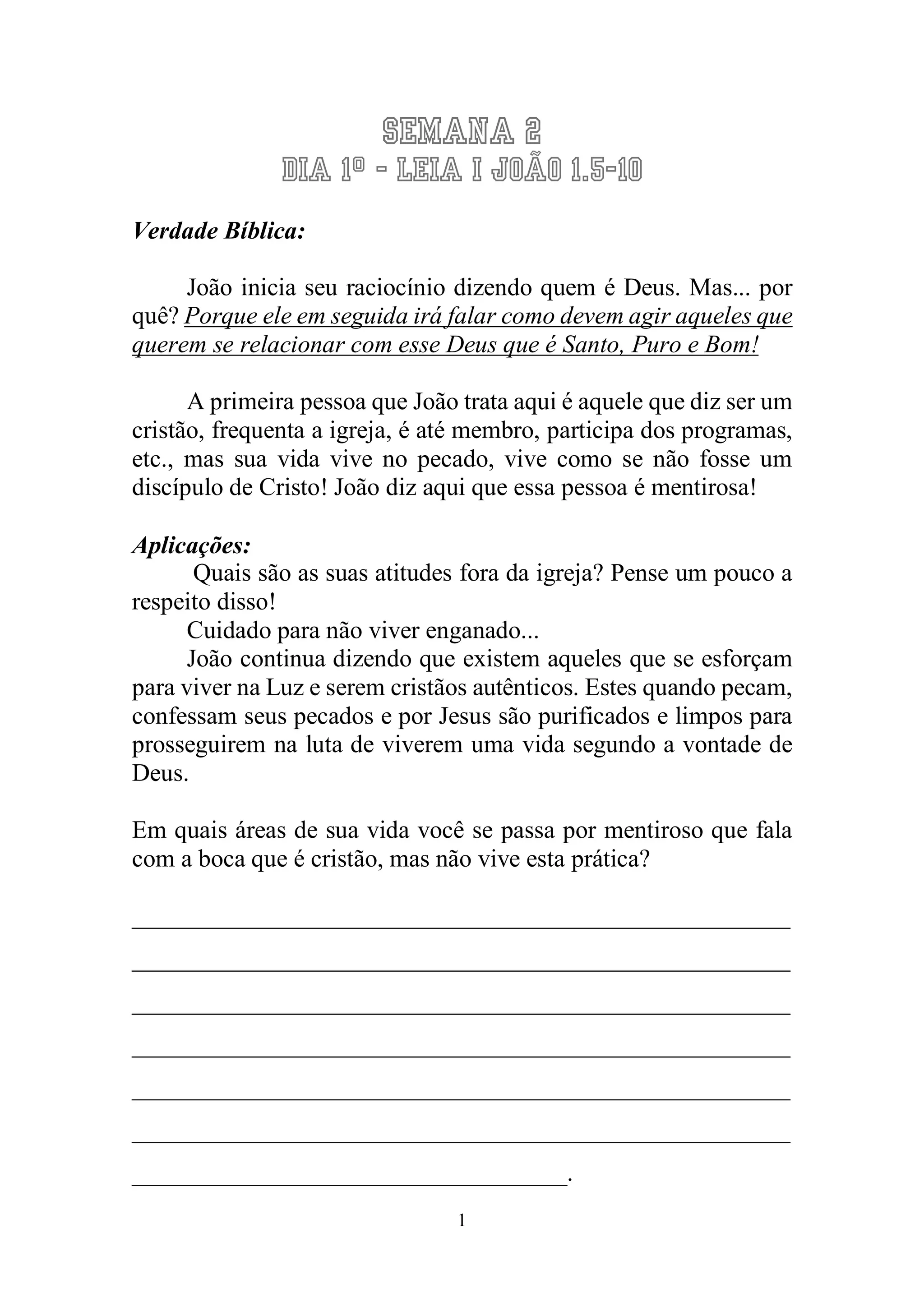 O documento discute trechos da primeira epístola de João sobre como viver uma vida cristã autêntica. João fala sobre a importância de confessar pecados e viver de acordo com a vontade de Deus, em vez de apenas se dizer cristão. Também aborda como amar a Deus acima do mundo e permanecer em Cristo através da obediência.