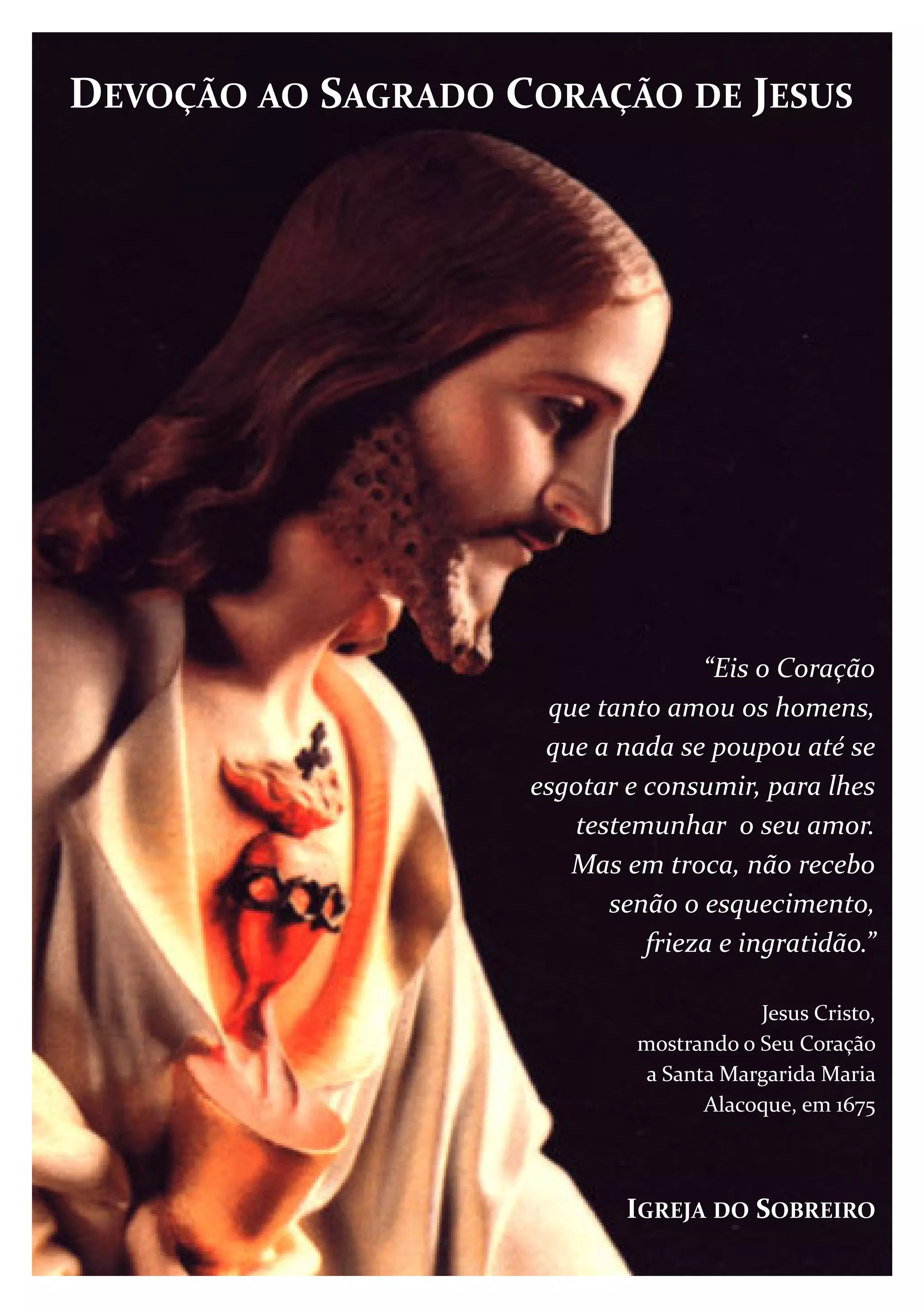 1) O documento descreve a devoção ao Sagrado Coração de Jesus, incluindo uma citação de Jesus a Santa Margarida Maria Alacoque. 2) Ele continua com orações como o Terço e meditações sobre o significado e benefícios do Coração de Jesus. 3) O texto fornece informações sobre como honrar e rezar ao Coração de Jesus.