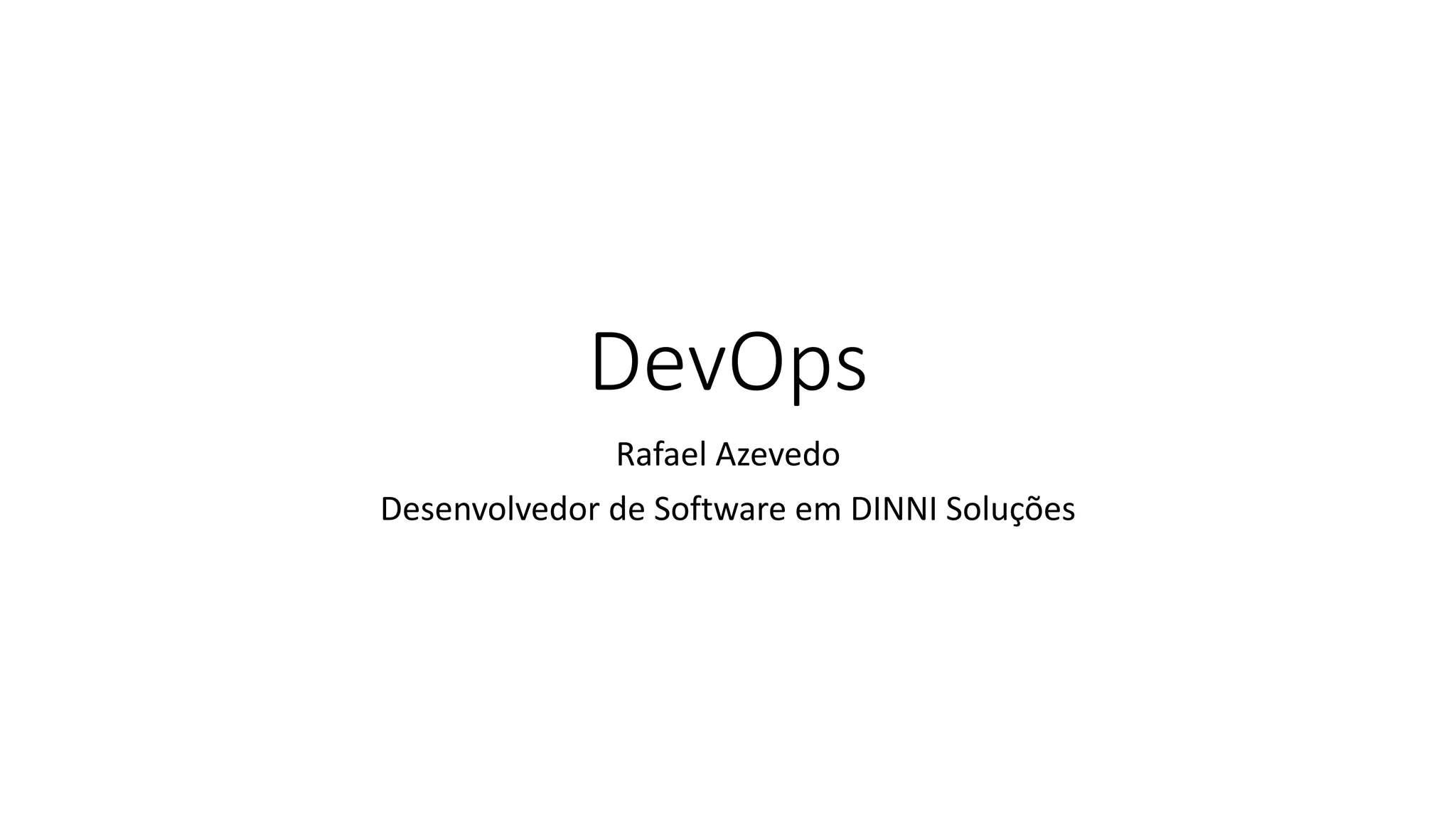 O documento discute o conceito de DevOps, que visa integrar os processos de desenvolvimento e implantação de software. Ele explica como DevOps pode melhorar a velocidade de entrega de valor através de práticas como infraestrutura como código, automação, entrega contínua e gestão enxuta. DevOps também aborda questões como liderança, burnout e o começo de transformações.