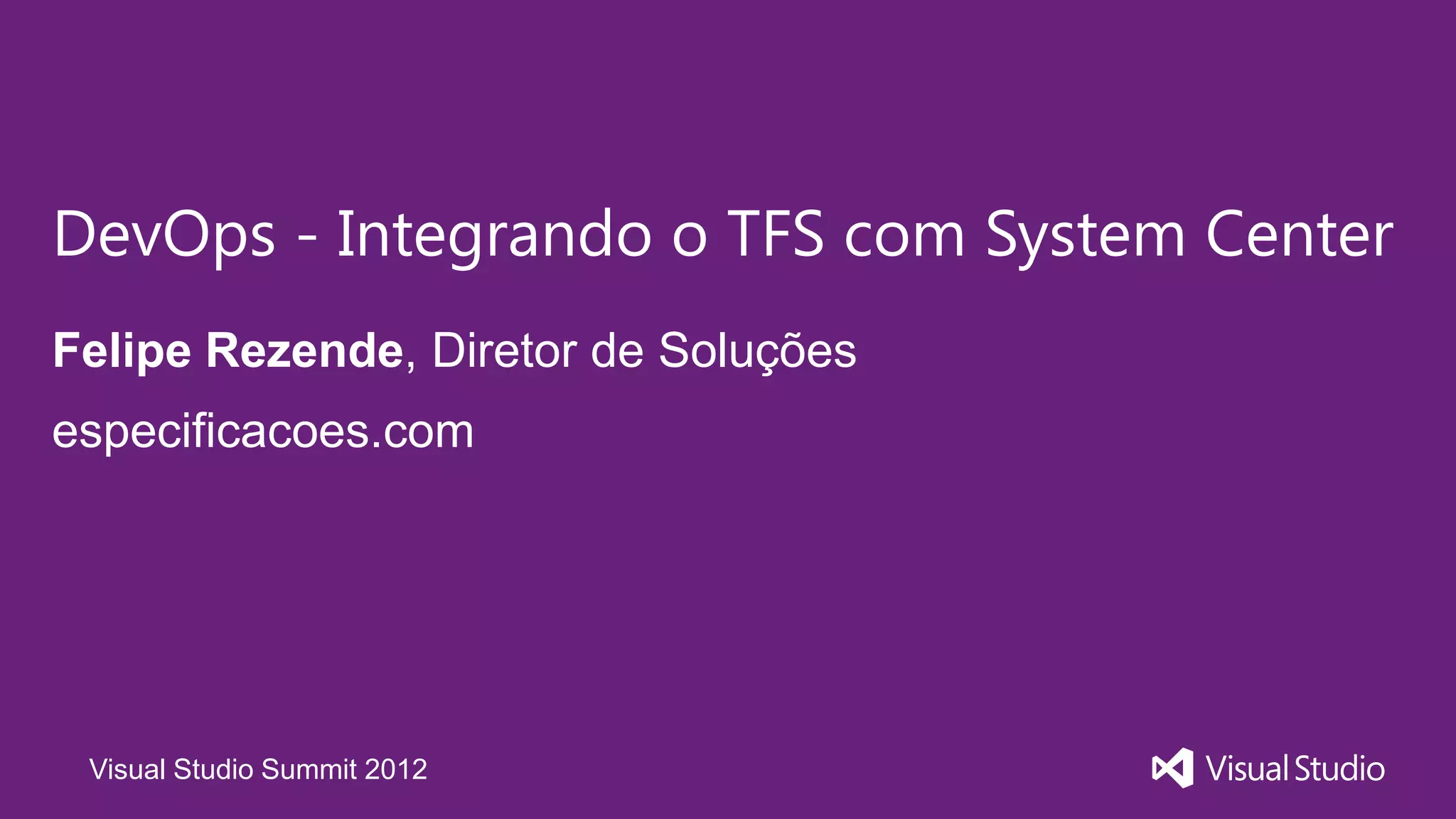 O documento apresenta como integrar o Team Foundation Server (TFS) com o System Center Operations Manager para permitir a monitoração contínua de aplicações em produção, sincronização de itens de trabalho do TFS com problemas de operação e coleta de feedback de usuários. A integração é feita por meio de pacotes de gerenciamento que sincronizam dados entre os sistemas e permitem o rastreamento contínuo do ciclo de vida de aplicações.
