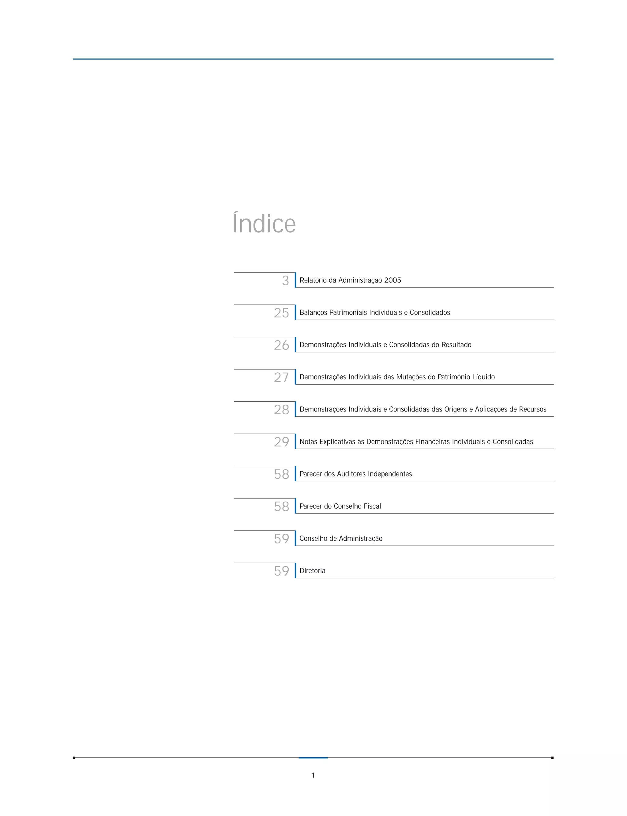 O relatório discute os resultados financeiros da empresa em 2005 e as realizações no desenvolvimento de novos produtos e mercados. A empresa teve receita líquida menor em 2005 devido à valorização do Real, mas manteve bons níveis de contratos e caixa líquido. A empresa também expandiu seus negócios de serviços e obteve classificação de risco "Investment Grade", reduzindo seu custo de capital.
