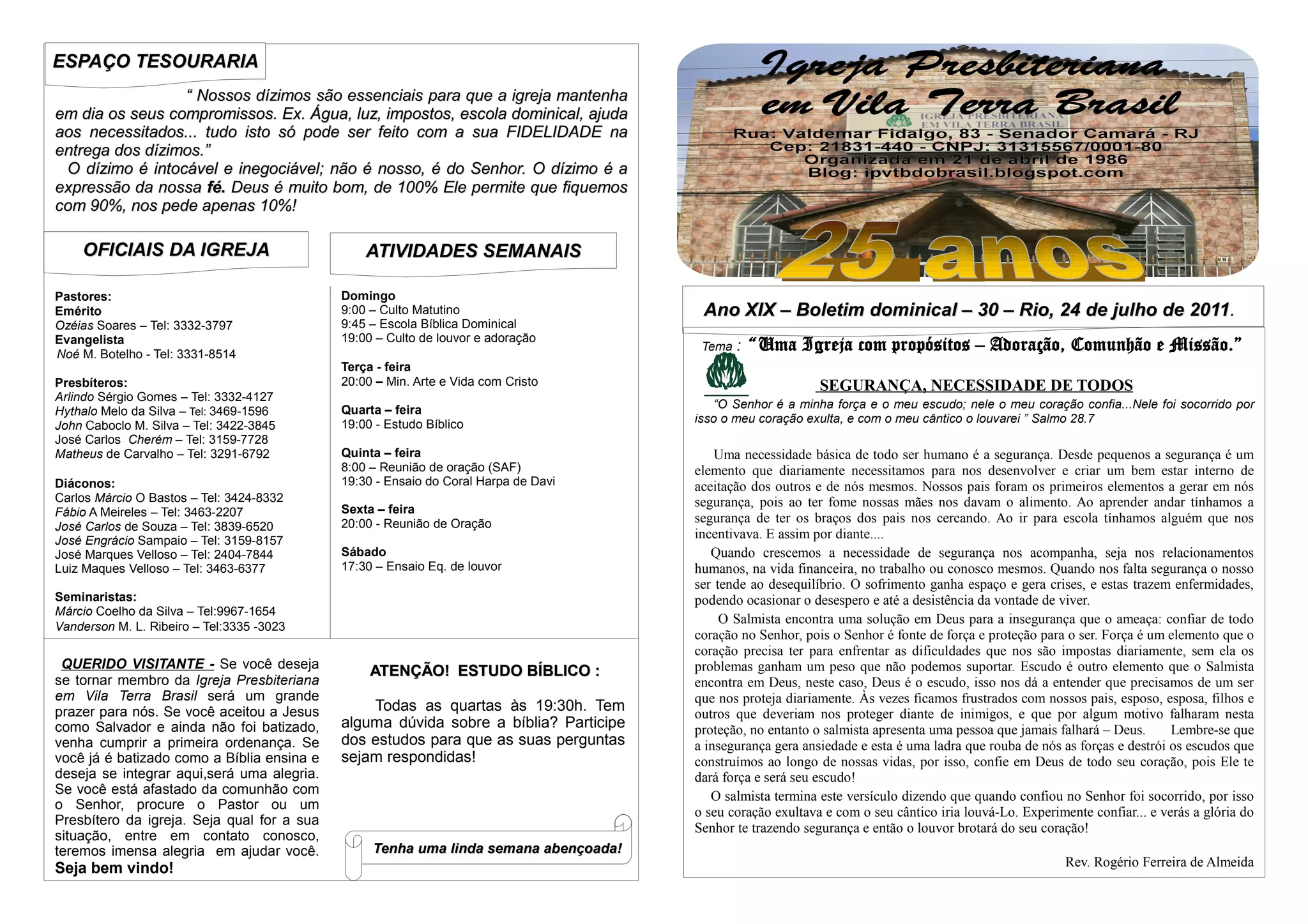 O documento destaca a importância dos dízimos para manter as atividades da igreja como água, luz e ajuda aos necessitados. O dízimo é descrito como uma expressão da fé e Deus permite que fiquemos com 90% do que recebemos. O documento também lista as atividades semanais da igreja e os oficiais responsáveis.