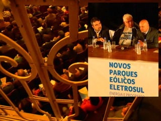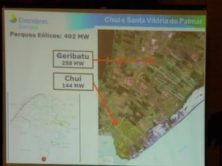 Parques eólicos foram construídos em Chuí e Santa Vitória do Palmar para gerar energia limpa a partir do vento. Fotos documentam a construção e operação dos parques, que ajudam a reduzir as emissões de carbono e fornecem energia renovável para a região.