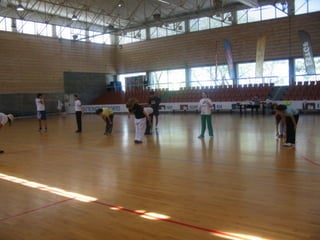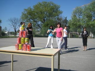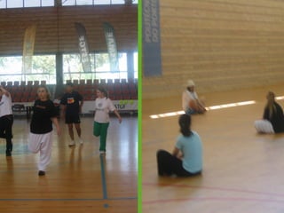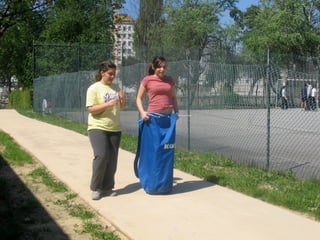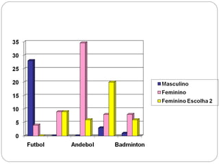 O documento descreve as atividades realizadas durante um "Dia D", incluindo jogos tradicionais como o jogo do saco e do ovo, torneios de jogos como a macaca e latas, e resultados de um inquérito sobre preferências de esportes e opinião sobre a organização do evento.