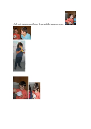 Lukas, um aluno do 2o ano, e seus colegas Francisco, Pedro e Miguel foram comemorar o dia da alimentação na sala da professora Fátima Costa do 4o ano. Eles desfrutaram da saborosa salada de fruta e se divertiram participando de várias atividades com seus colegas.