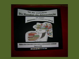 Na Escola Sede, no projeto SOBE/Alimentação, criaram um Cantinho Saudável com sugestões de leitura e atividades como contar histórias, provar rebuçados verdes, jogos de adivinhação e construir um painel coletivo com carimbos de vegetais e frutos para promover hábitos alimentares saudáveis. Fotografaram as atividades realizadas no dia 16 de outubro.