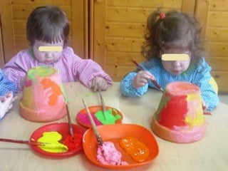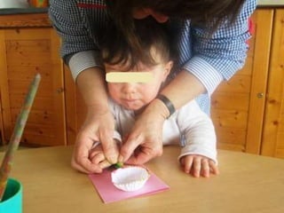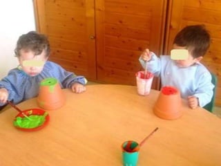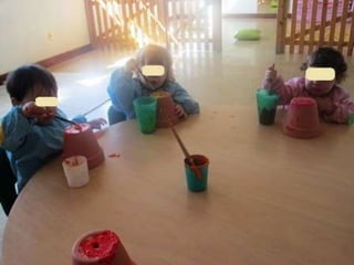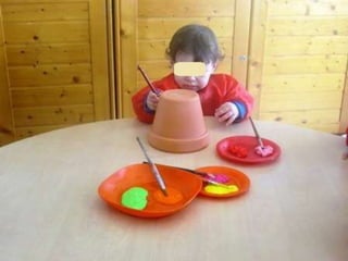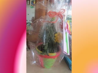 O documento descreve um projeto de artesanato para o Dia da Mãe, envolvendo a pintura de uma palhinha, carimbagem do dedo polegar e confecção de um vaso de flores como presente final.