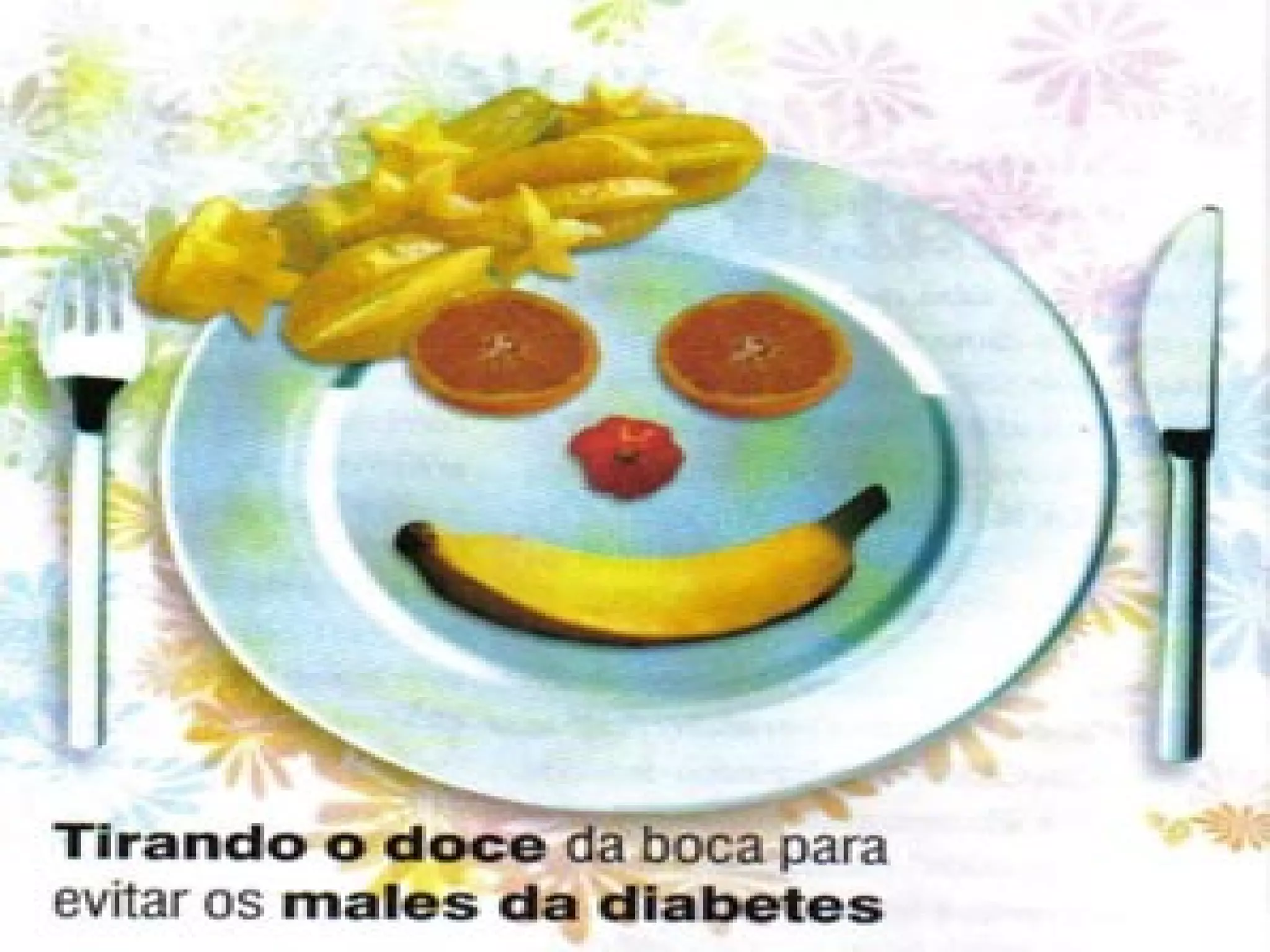 O documento discute o que é diabetes, onde é produzida a insulina e sua função, fatores de risco para diabetes, como a alimentação afeta pessoas com diabetes e alimentos saudáveis para elas. A diabetes ocorre quando o corpo não produz insulina suficiente ou não responde adequadamente, e a insulina é produzida no pâncreas para metabolizar a glicose. Fatores como excesso de peso, pressão alta e estilo de vida sedentário aumentam o risco, enquanto uma dieta balanceada e exercícios podem ajudar no