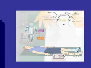 O documento discute métodos para avaliar a composição corporal, incluindo procedimentos diretos, indiretos e duplamente indiretos. Aborda técnicas como pesagem hidrostática, pletismografia, DEXA, bioimpedância elétrica e antropometria. Explica como medir circunferências, dobras cutâneas e calcular o percentual de gordura corporal usando as fórmulas de Jackson e Pollock.
