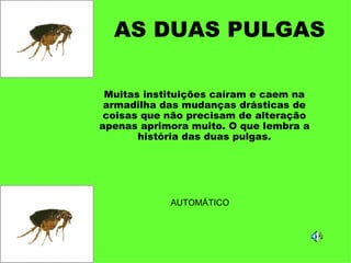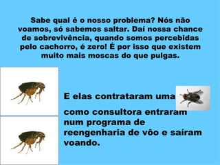Esta história narra a jornada de duas pulgas que contrataram diversos consultores para se adaptarem melhor aos desafios de sobreviverem, porém acabaram se tornando grandes demais e ineficientes. Uma pulguinha mais sábia lhes explica que a solução não estava na "reengenharia radical", mas sim em um simples "reposicionamento", sugando o sangue no cocuruto do cachorro, local inacessível à pata.