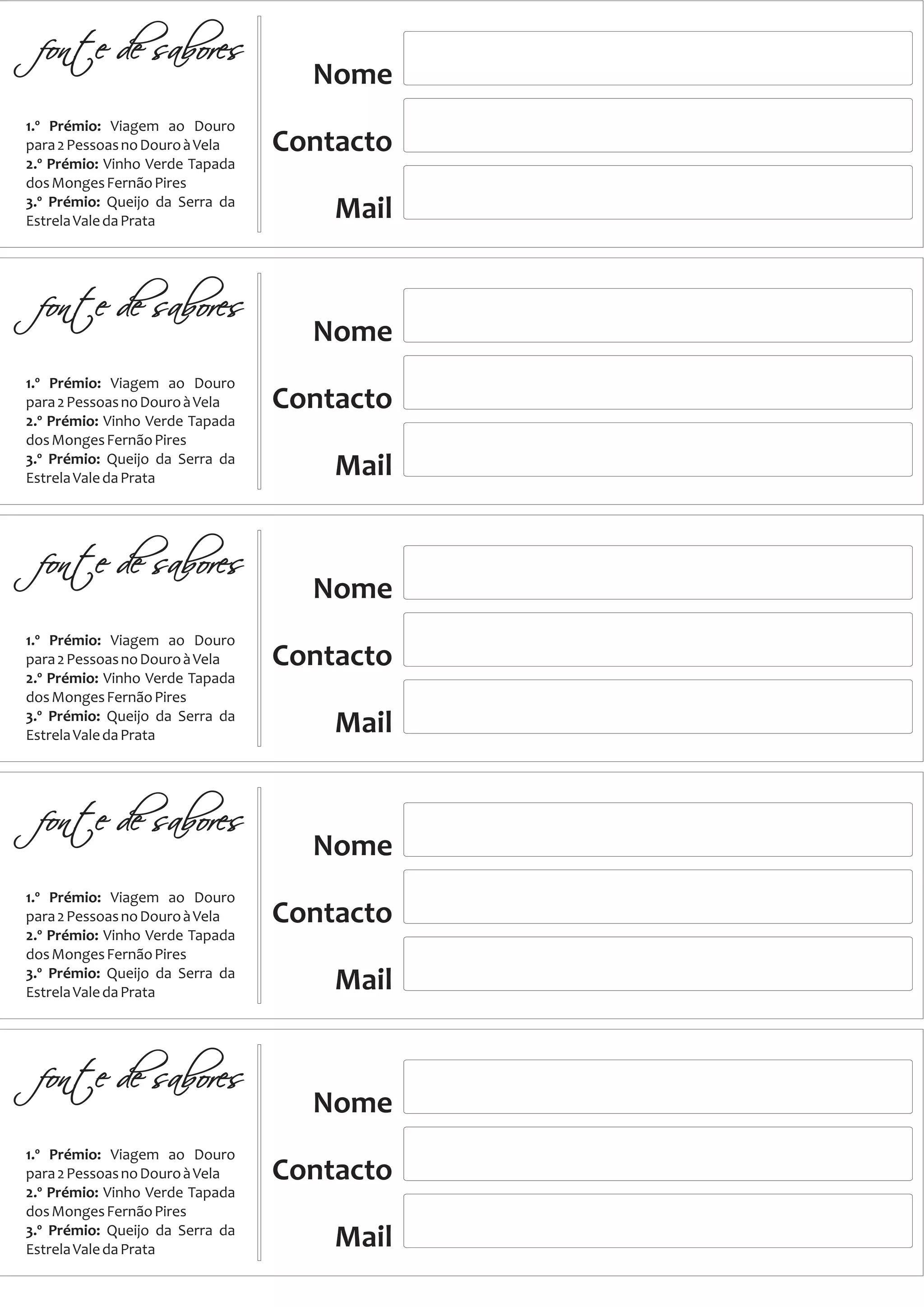 O documento lista os prêmios de um sorteio: 1o prêmio é uma viagem para 2 pessoas no Douro à Vela, 2o prêmio é um vinho verde Tapada dos Monges Fernão Pires, e 3o prêmio é um queijo da Serra da Estrela Vale da Prata.