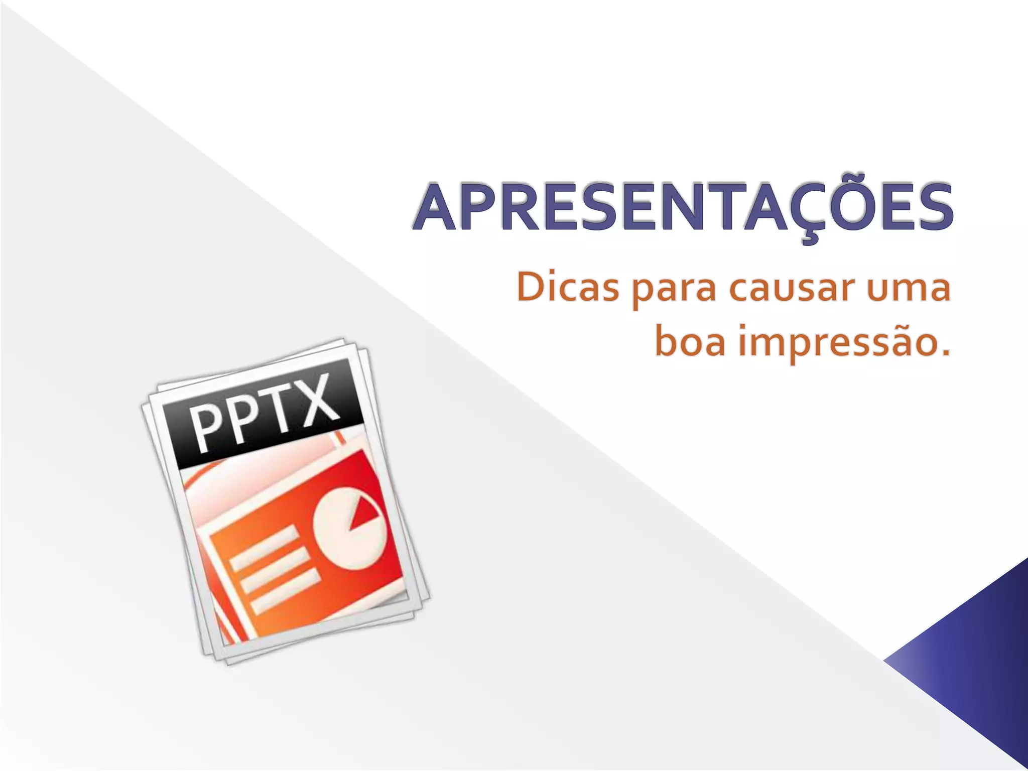 Verifique a ortografia e vista-se formalmente para causar uma boa impressão. Use poucas fontes e tamanhos de letra legíveis, e apenas uma imagem por slide de boa qualidade. Mantenha contato visual com o público e não leia os slides, improvise ou exiba erros.