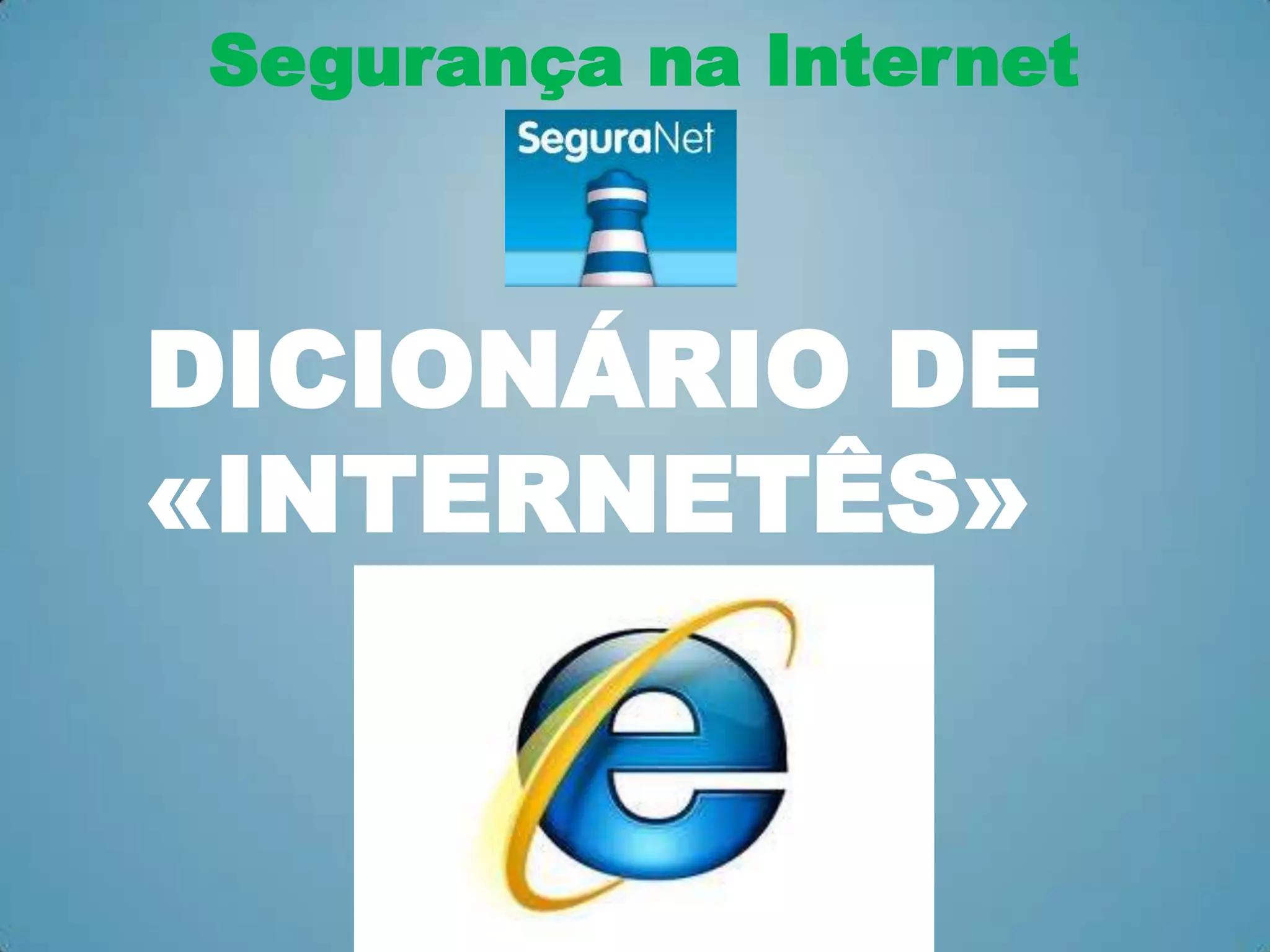 Este documento fornece definições concisas para vários termos técnicos relacionados à segurança e uso da internet. Explica conceitos como arroba, anexo, browser, cache, domínio, download, e-mail, firewall, motor de pesquisa, senha, servidor e vírus. O documento serve como um dicionário informal de "internetês" para auxiliar na compreensão dos principais termos e conceitos relacionados à rede mundial.