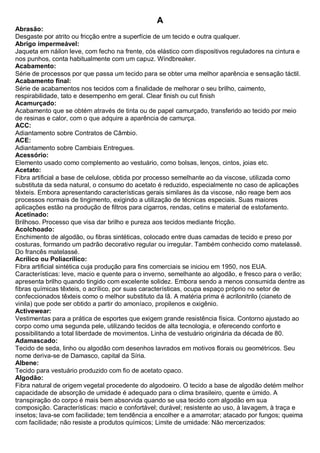 2) São descritos processos como acabamento, tingimento e outros usados na fabricação de tecidos.